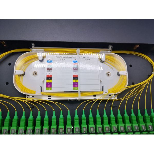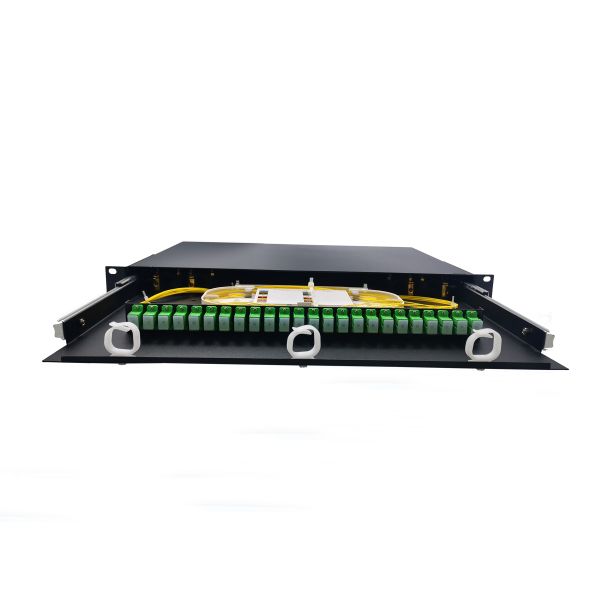 GPSR 19 inch rack-mount slide fiber patch panels are ideal for high density LAN interconnect or cross-connect patching. Each patch panel features 24 SC Fiber Optic Connectors. 1U Fiber Optic Distribution Panel can terminate/splice from 12 to 48 fibers, in various types of connectors SC LC ST FC E2000, etc. Accessories include splice trays, splice sleeves, cable gland and wire management.