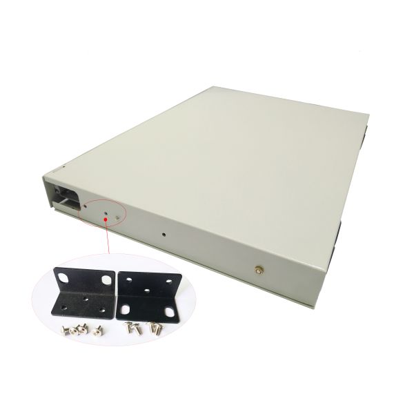 The box can be rack mounted on the ODF frame 19inch or 23inch by mounting ears, which will be configuration with the accessory bag, with enough screws, when delivery, not fixed on the box. pls take it out when onsite construction.